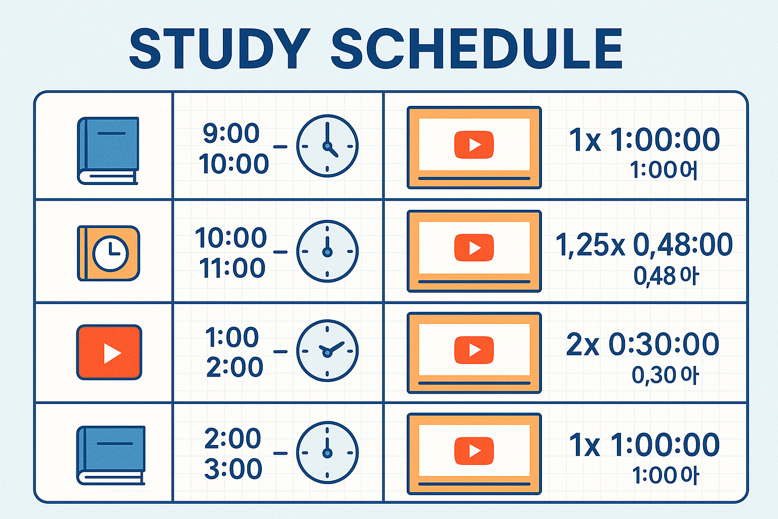 • 오전 (집중력 높음): 이론 중심 긴 영상
